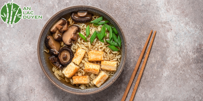 Mì chay là một món ăn truyền thống khi kết hợp với nấm hương, món ăn trở nên phong phú hơn với hương vị đậm đà từ nấm hương và sự thơm ngon của các loại rau củ tươi ngon. Đây là một lựa chọn lý tưởng cho bữa ăn chay thêm phần đa dạng và hấp dẫn.